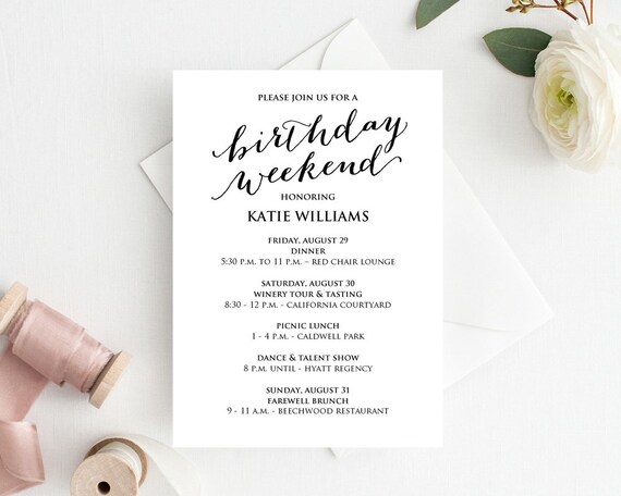 Birthday Weekend Itinerary Birthday Weekend Invitations | Etsy 11+ Birthday Itinerary Templates – Free Sample, Example, Format .